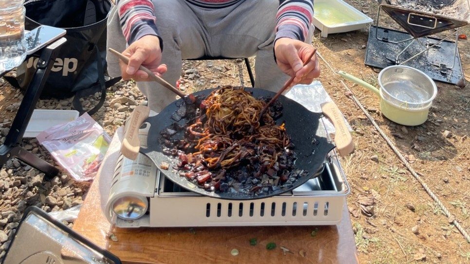 이번 캠핑엔 남편이 웍을 사서 해주겠다던 짜장면 등장